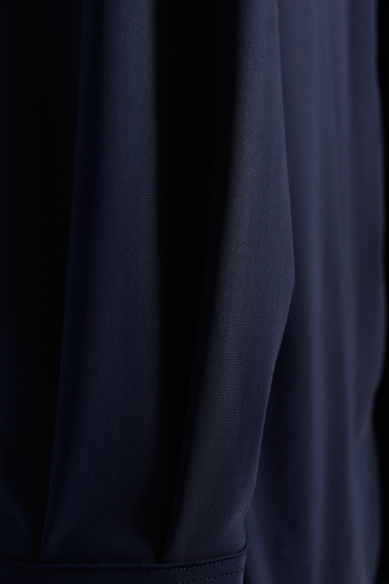 Camisa tipo polera confeccionada en tejido 77% reciclado y 23% elastano color azul marino. Presenta cuello especial abierto tipo Mao.