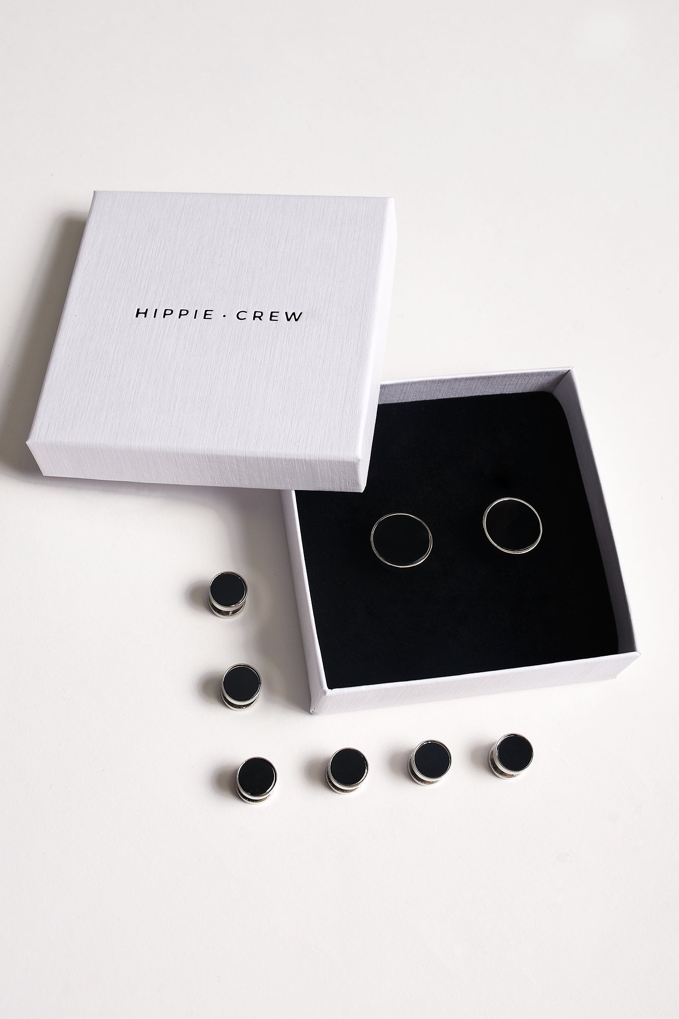 Pack que contiene la botonadura para la camisa de smoking y gemelos a juego.