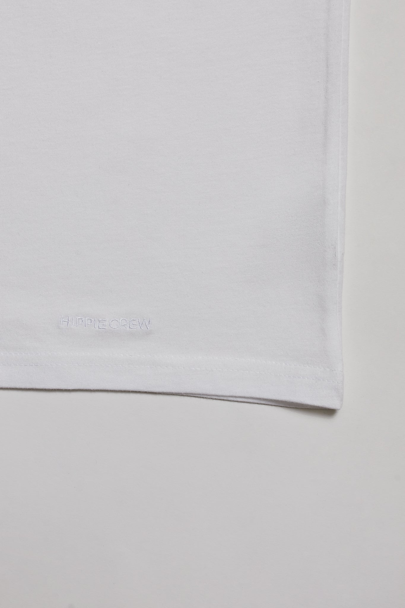 Camiseta color blanca con bordado en la parte inferior. Cuello de pico. La camiseta ligera perfecta para los amantes de lo diferente. Tu toque Hippie Crew para el verano.